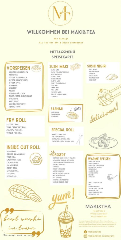 Bitte beachten Sie, dass bei übermäßigem Stehenlassen von Speisen ein Aufpreis berechnet werden kann.